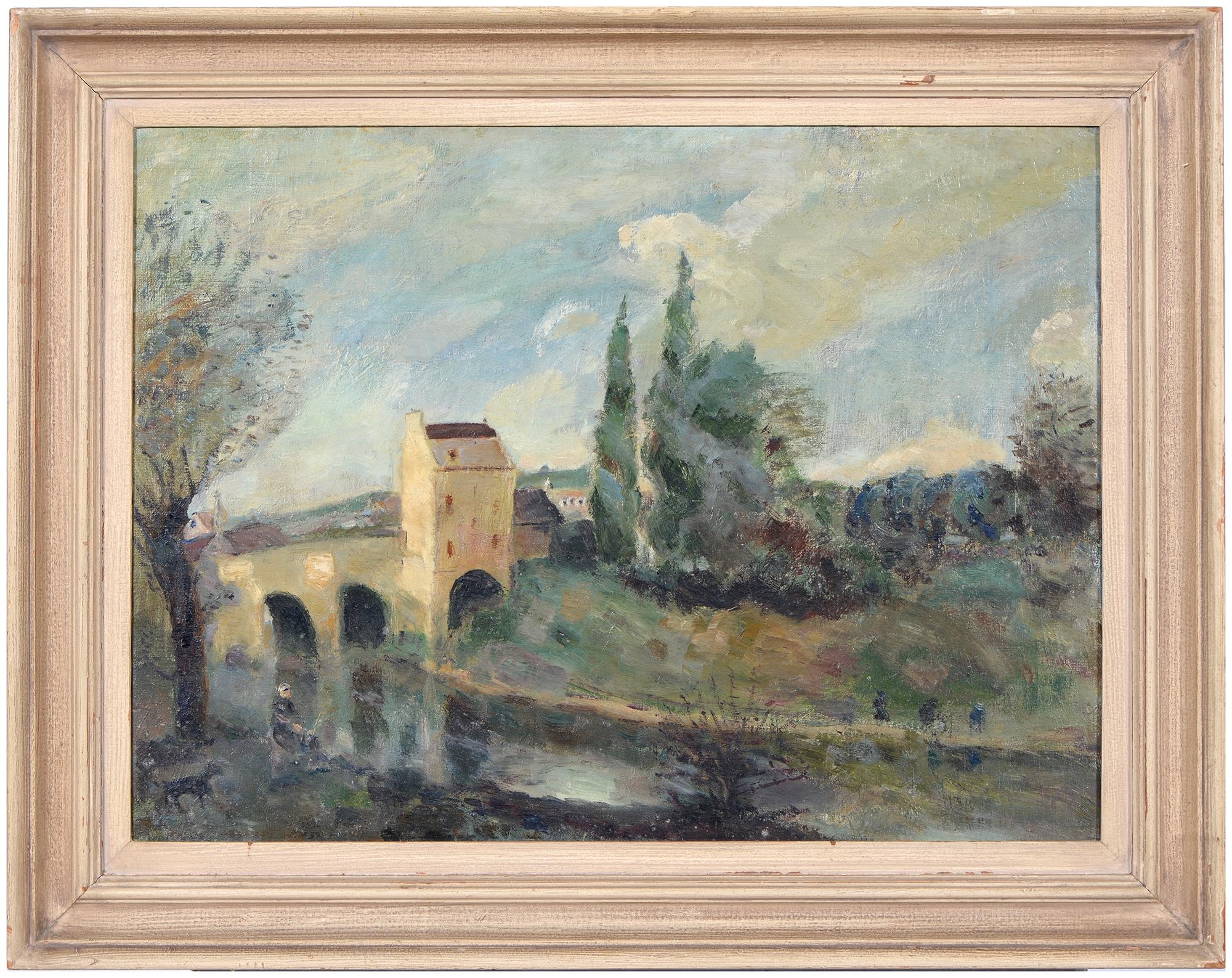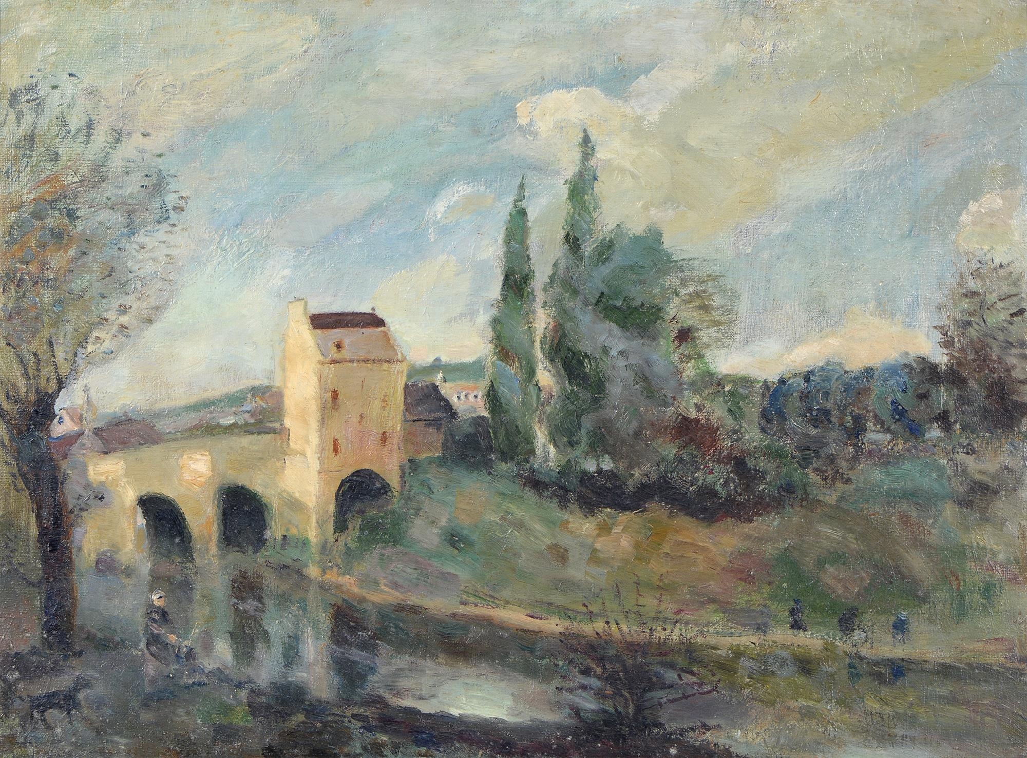 Landscape, with a Figure and Dog by a River Attributed to Gerty Simon (1887-1970) – Landscape, with a Figure and Dog by a River, oil on canvas, 43.5 x 59cm